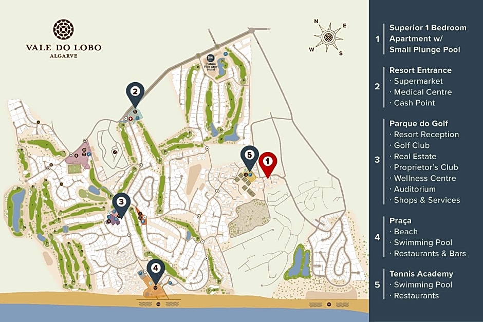 This deluxe three bedroom apartment is located in the Vale do Golfe, 1.2 mi away from Vale do Lobo beach and Praça. The apartment consists of a living room with dining area, fully equipped kitchen, master suite with double bed and walk-in closet, and two other bedrooms with attached bathroom with 2 twin beds. The terrace, with pool (not heated), has a lounge area with sunbeds and dining area for the meals “al fresco”.