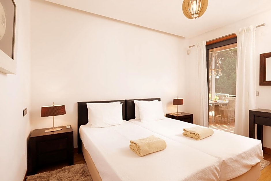 This deluxe apartment with hot tub located at the Vale do Golf (1.2 mi away from the beach), includes: - 2 En-suite Bedrooms (one double bed and one with two single beds); - Free toiletries; - Bright reception room with adjoining dining room; - Fully equipped kitchen equipped with a stovetop, a refrigerator, a dishwasher and kitchenware; - LCD TV with cable channels; - Free WiFi; - Terrace area with private hot tub; - Garden View. Cleaning service is provided twice per week (excluding Sundays and public holidays).